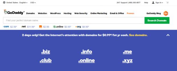 Or you can get another Godaddy 99 cent domain discount still active. This promotion works for .COM when you register 2 years or more on domains, so the 1st year just 99 cents, 2nd year is normal price$14.99.